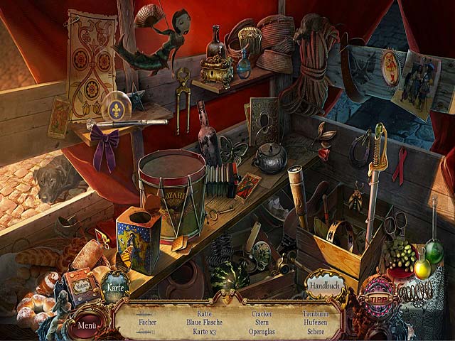 Nötig ist diese Anzeige nicht unbedingt, denn European Mystery: Duft des Verlangens ist ein recht gradliniges und einfaches Spiel. Die Karte wird dir die Möglichkeit geben, von Ort zu Ort zu hüpfen was brauchbar ist, um Wege zu sparen. Zudem hast du einige Male Wimmelbilder, die aufeinmal auftauchen und schonmal gespielt wurden. Ansonsten kann man sich hin und wieder mal die Laufschuhe anziehen.