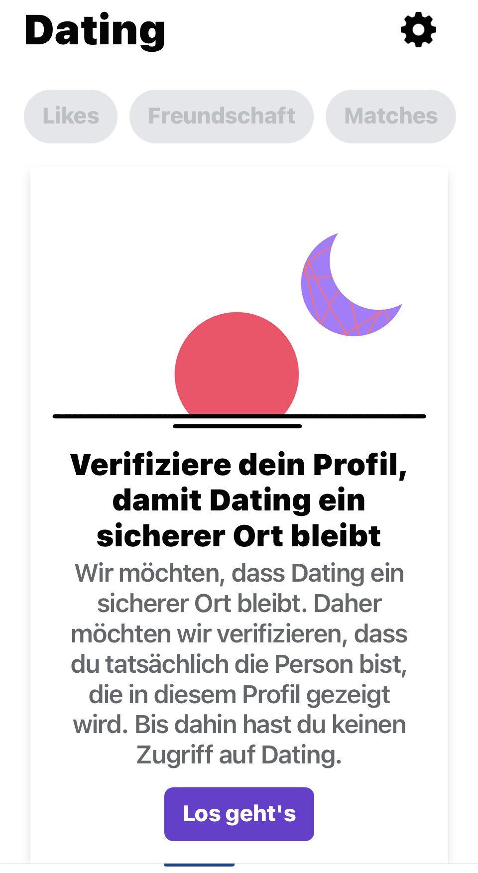 Wir möchten, dass Dating ein sicherer Ort bleibt. Daher möchten wir verifizieren, dass du tatsächlich die Person bist, die in diesem Profil gezeigt wird. Bis dahin hast du keinen Zugriff auf Dating.
