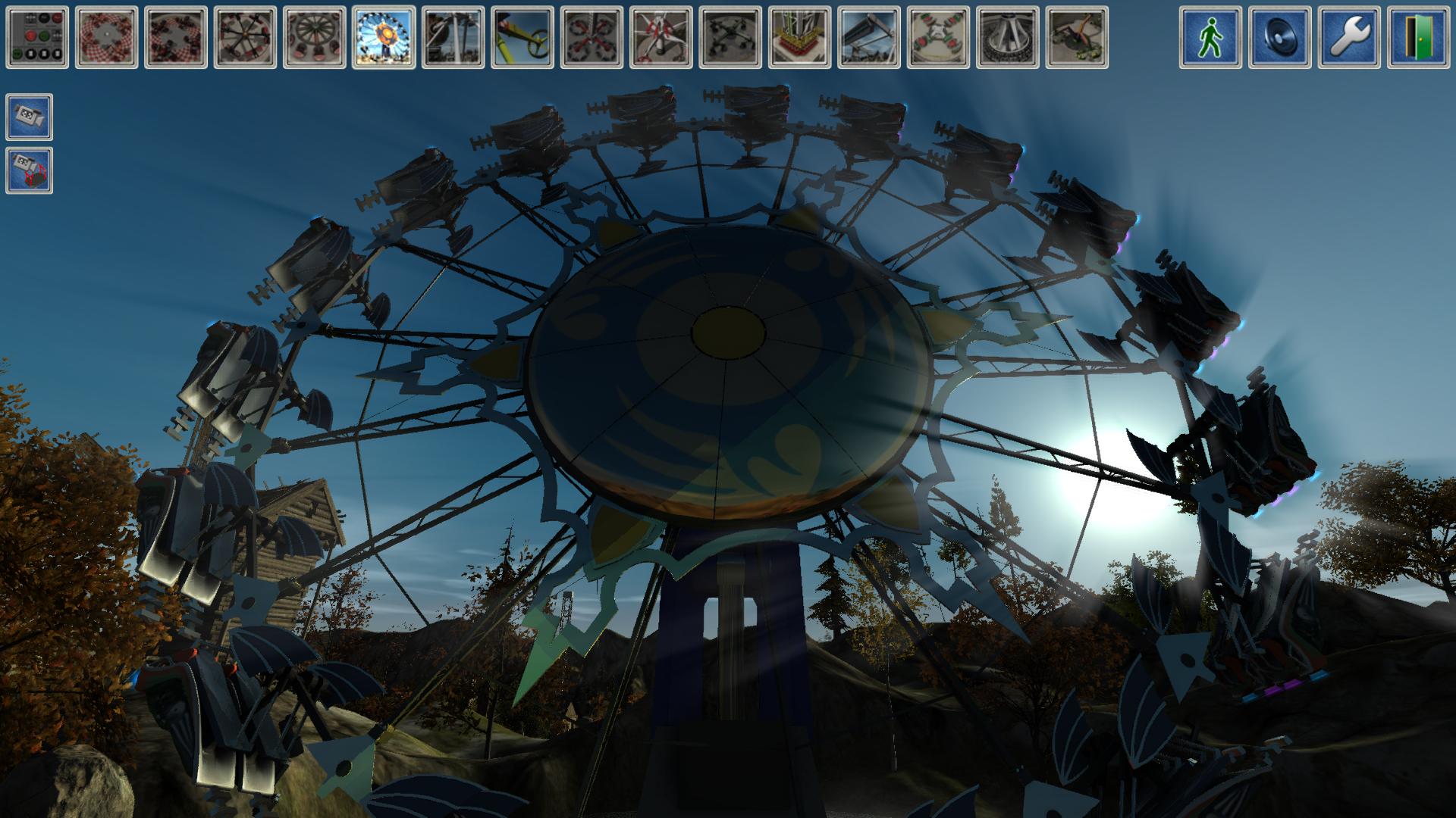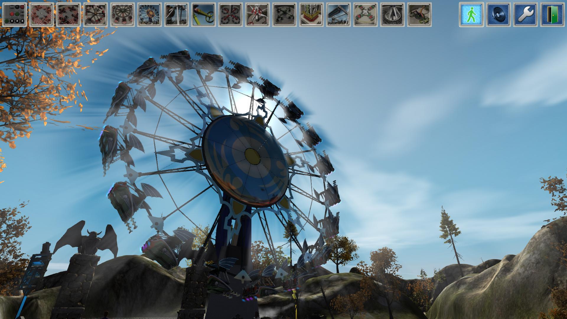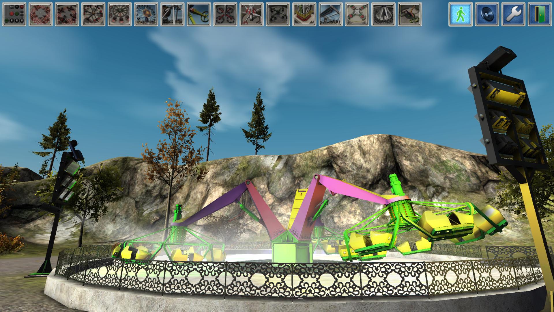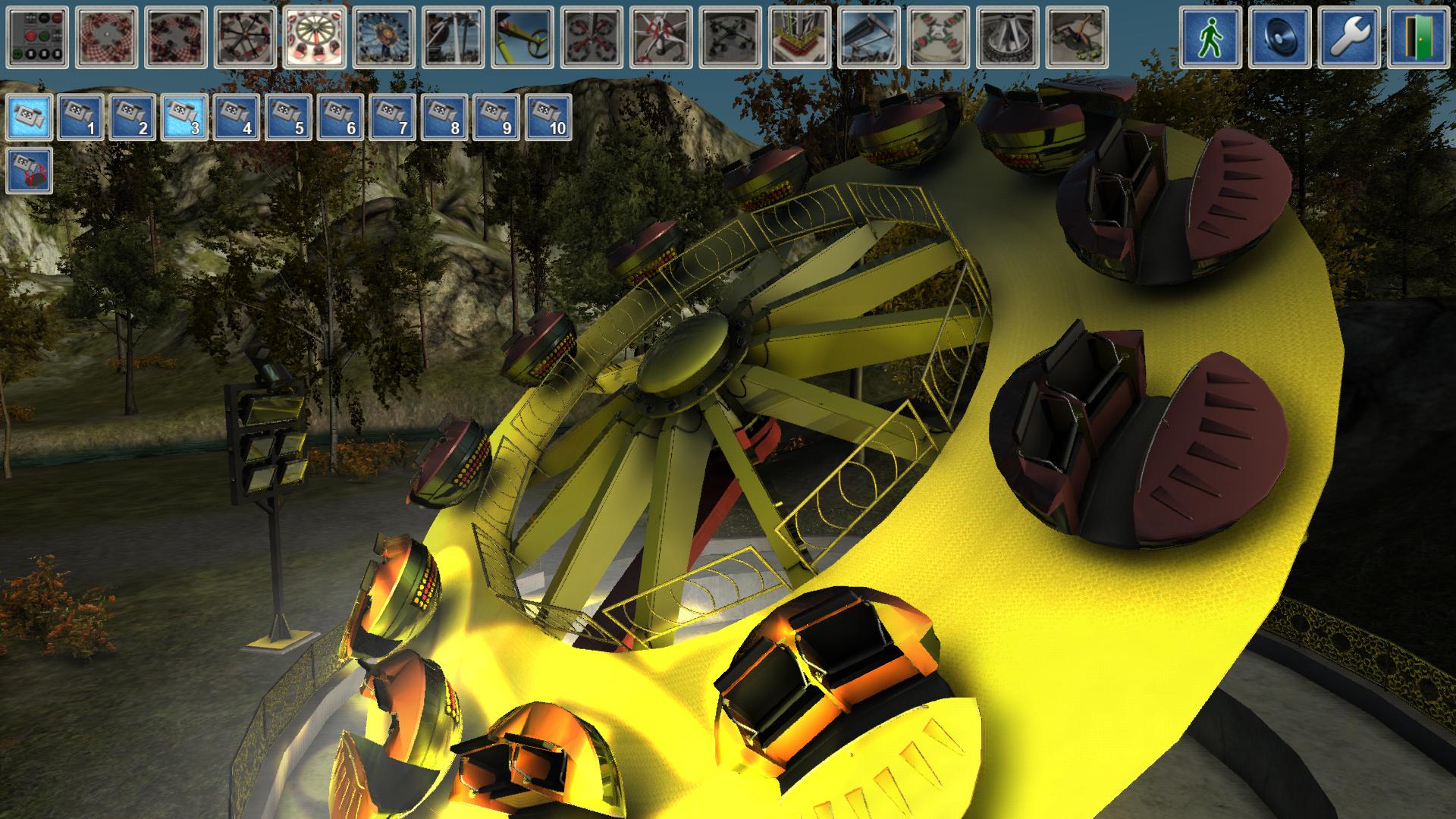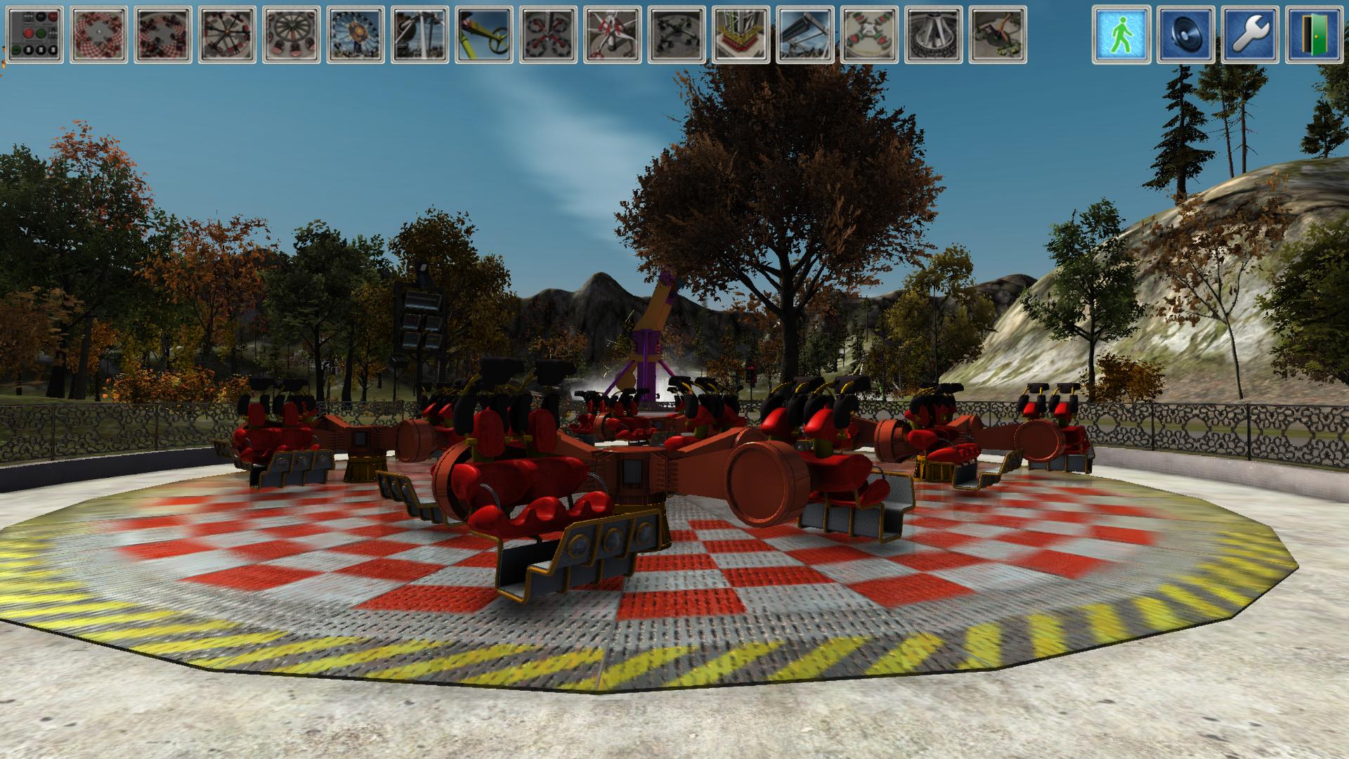 Alle Fahrgeschäfte können in einer realistisch gestalteten Freizeitparkumgebung zu jeder Tageszeit bewundert, gesteuert und erlebt werden.