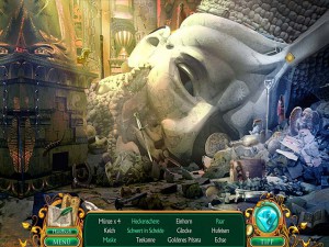 Der Spielverlauf ist folgender: Betrittst du eine Szene, sind hier und da Fragmente aller Art, die dort nicht hingehören. Noch können sie aber nicht eingesammelt werden. Erst wenn du die dazugehörige „Baustelle“ angeklickt hast – ein unfertiges Minispiel, Wappen, Flagge, Emblem usw. – öffnet sich ein Abteil/ Reiter im Inventar mit den zu suchenden Fragmenten. Sind diese leicht durchscheinend, bedeutet dies, dass die Dinge in einer anderen Szene zu suchen sind. Zeitweise hast du so auch schon mal 4 – 5 Reiter. Hast du die entsprechenden Dinge alle gefunden, wandert der fertige Gegenstand in das richtige Inventar und wartet auf seinen Einsatz.