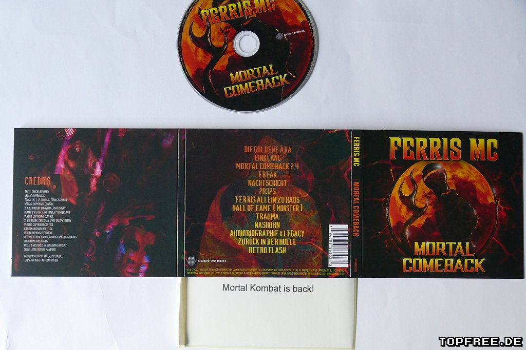 Ferris MC hat eine neue Platte auf den Mark geworfen. „Mortal Comeback“ – Normalerweise fand ich Ferris bisher immer zu freakig. Das Cover jetzt hatte mich als Gamer dazu bewogen vorzubestellen. Alle Albencover mit Bezug auf Video- oder Computerspiele haben irgendwie was. Und die Songs so?
