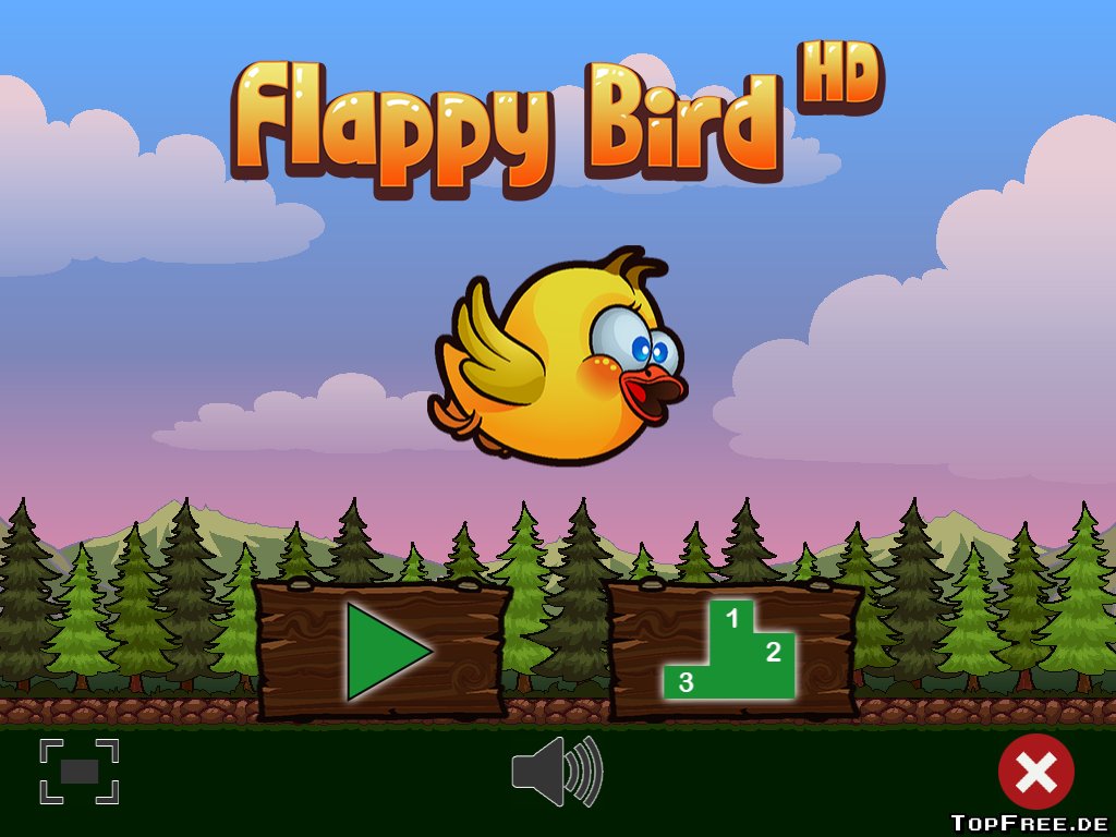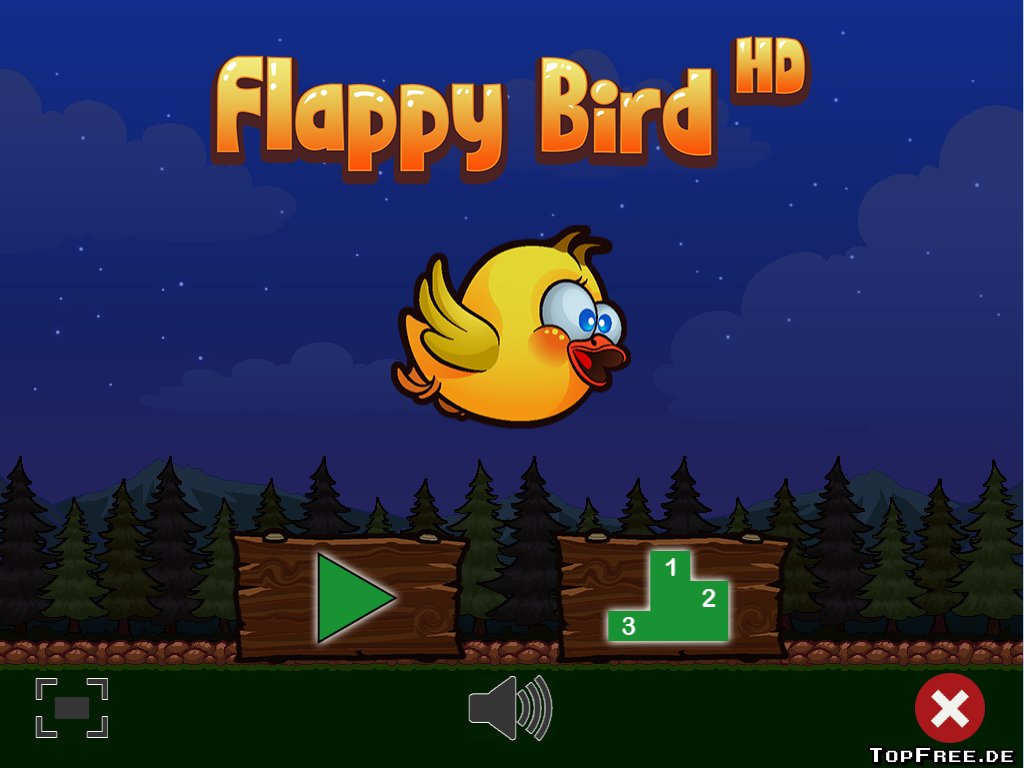 Mit einem Klick auf „FlappyBirdHD.exe“ oder der angelegten Desktopverknüpfung wird „Flappy Bird HD“ gestartet. Das Spiel öffnet sich im Fenstermodus mit einer Auflösung von 1024×768. Es gibt kein Intro und keine Hintergrundmusik. Im „Hauptmenü“ gibt es nur die Wahl zu einem Vollbildmodus, den Ton auszustellen – der einzig und allein aus ein paar Klicksounds besteht, die Punkteliste anzusehen, das Spiel zu starten oder zu beenden. Drückt man die Escape-Taste (Esc) wird übrigens das Spiel jederzeit sofort beendet und man landet auf dem Desktop – der Büroknopf? In der Mitte des Haupt-Bildschirms bewegt der gelbe dicke Vogel seine Flügel auf und ab. Die Highscore-Liste besteht nur aus drei Plätzen, einmal für den klassischen und einmal für den erweiterten Modus. Das war’s!