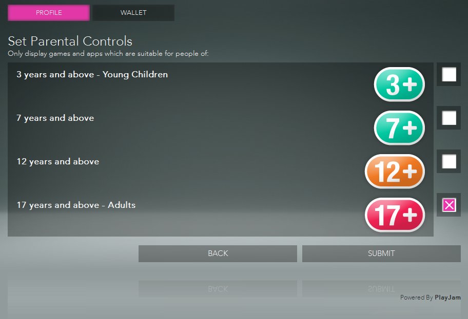 Jetzt muss sich nur noch registriert werden. Dazu erscheint ein Code auf dem Bildschirm, der dann in einem normalen Browser über die Internetseite vom GameStick eingegeben werden muss. Wer den Stick an seinem Monitor angeschlossen hat, muss somit wieder ins Betriebssystem wechseln, um sich anzumelden. Die Registrierung ansich dauert aber keine fünf Minuten. Persönliche Daten, bis auf Name, Benutzername und das Passwort sowie eine E-Mail Adresse werden nicht verlangt. Ebenfalls muss keine Kreditkartennummer o.ä. eingegeben werden. Der GameStick funktioniert auch komplett ohne Kreditkarte. Etwas verwirrend fand ich die Altersfreigabe der Spiele, denn einmal eingeloggt, lässt sich dieses immer wieder ändern. Sprich auch das Kind könnte die Einstellung der Eltern wieder rückgänging machen. Dennoch eine gute Funktion!