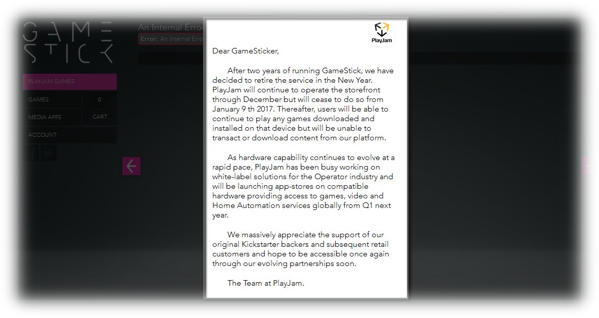 Im Prinzip war es jedem Besitzer schon länger klar. Die Konsole überlebt nicht mehr lange. Es gab keine neuen Spiele mehr und zuletzt nur noch ein paar kostenlose Mini-Games. Seit Anfang Januar vor einem Jahr war aber damit schon Schluss. Support konnte man ebenfalls nicht mehr erwarten. Wer Probleme mit seinem GameStick hatte, war auf sich alleine gestellt.