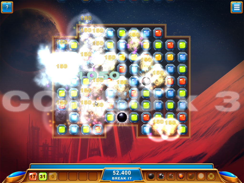 Hier erlebt der Spieler das wohl schnellste Match-3-Game aller Zeiten! In toller HD-Grafik präsentiert, erwarten ihn knackige Levels mit unterschiedlichem Match-3-Gameplay auf der Ice-Welt oder dem Fire-Planeten. Der virtuelle Raumfahrer hat zum Beispiel die Aufgabe, eine vorgegebene Farbe auf dem Spielfeld verschwinden zu lassen, besondere Steine an das untere Ende des Spielfelds zu befördern, Spielsteine in einer bestimmten Form in Position zu bringen oder möglichst viele Explosionen auszulösen – sowie vieles mehr. Rund 140 Levels mit verschiedenen Zielaufgaben garantieren nahezu endlosen Spielspaß.