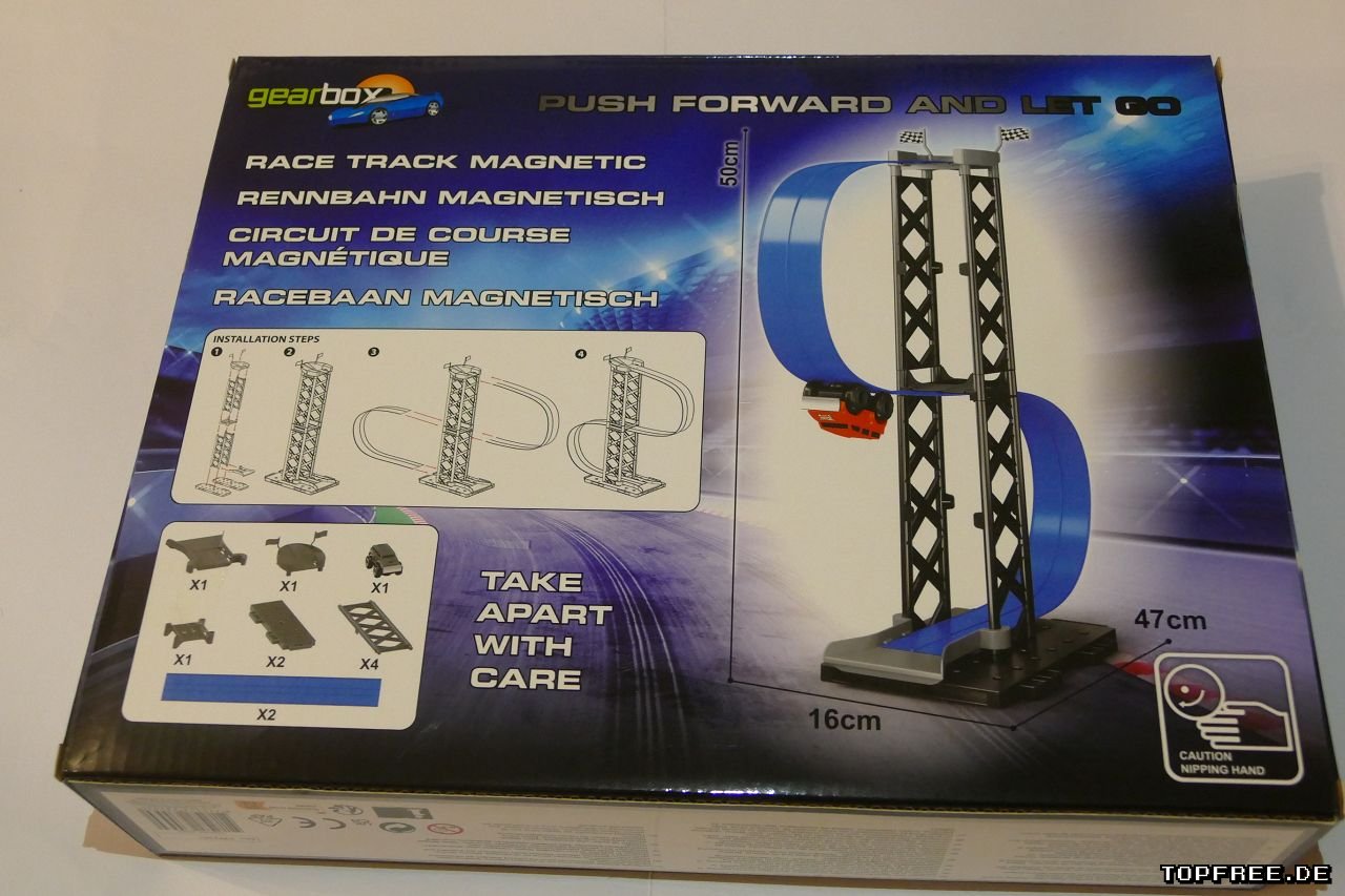Gearbox? Noch nie von gehört. Rennbahn Magnetisch? Klingt interessant. Günstiger Preis gleich billiges Spielzeug? Schauen wir uns die magnetische Rennbahn einmal genauer an …