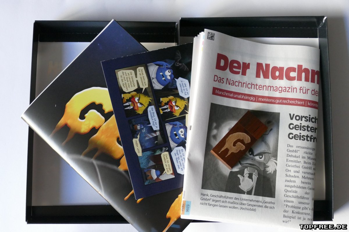 Die Box-Variante der Geistfrei GmbH ist heute eingetroffen. Ein klassisches Grafik-Adventure von Robin Bretschneider und Roland Wejner, die beide die Hülle signiert haben. Hier die Bilder des Unboxings: