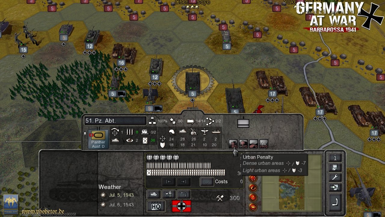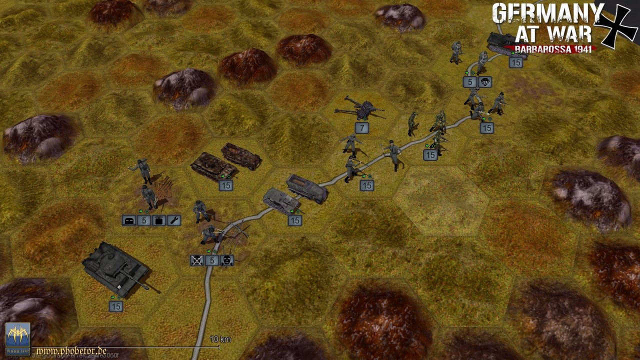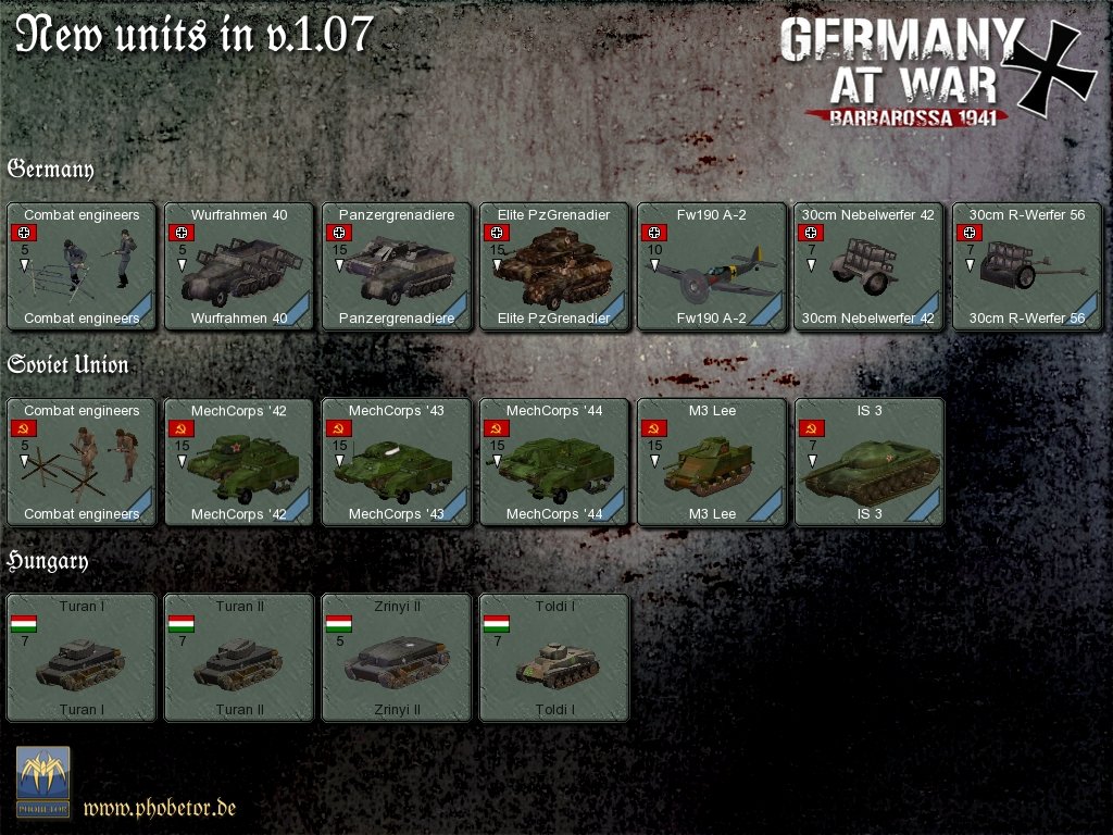 Für das Spiel Germany at War ist ein offizielles Update auf Version 1.07 veröffentlicht worden. Germany at War ist ein rundenbasierendes Strategiespiel von Phobetor, das an der deutschen Ostfront des zweiten Weltkrieges angesiedelt ist. In der Hauptkampagne, die 37 Karten umfaßt, muss bis Ende 1942 die Linie Archangelsk-Astrachan erreicht werden, bevor die sowjetische Dampfwalze Ihre Stärke voll entfalten kann.