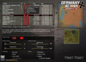 Dabei spielt man die drei Heeresgruppen Nord, Mitte und Süd bis man nach der Schlacht von Smolensk die Hauptachse des Feldzuges 1941 bestimmt. Einheiten können dabei zwischen den Heeresgruppen ausgetauscht werden und auf dem Feldzug bis zum Ende mitgenommen werden. Diese gewinnen Erfahrung und können aufgerüstet und mit Unterstützungsverbänden verstärkt werden.