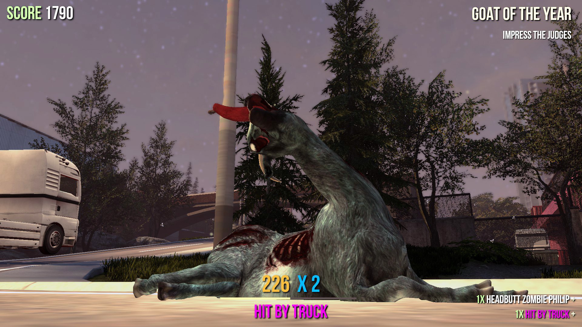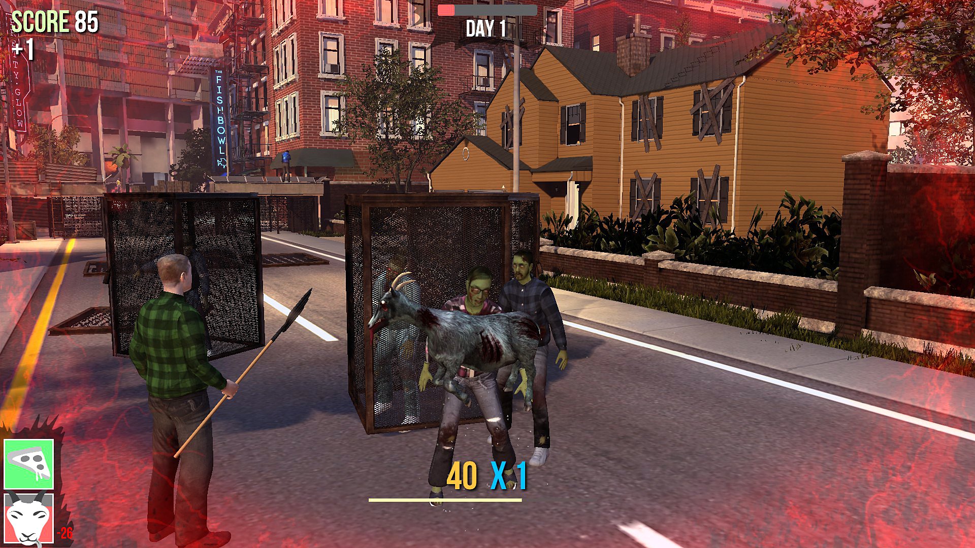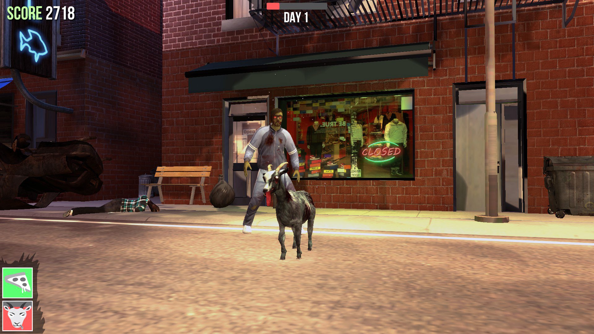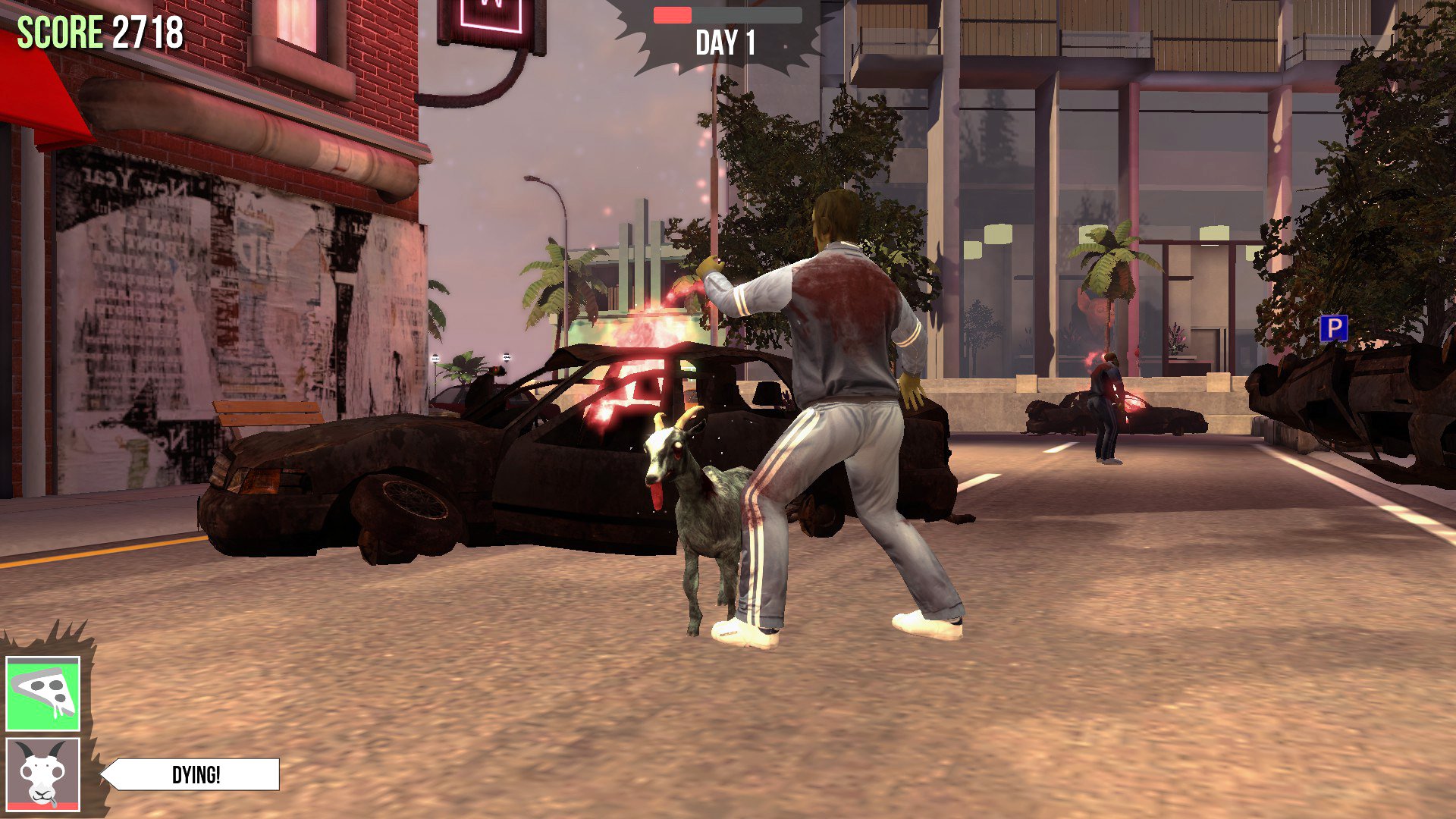 Wenn in GoatZ die Ziegokalypse losbricht, nimmt das Chaos seinen Lauf. Hier darf der Spieler nach Herzenslust als Zombie-Ziege ein unbescholtenes Städtchen verwüsten. Kombiniert man den Heißhunger einer durchschnittlichen Ziege mit dem eines Zombies, entsteht dabei der leckerste Survival-Modus aller Zeiten, in dem für schwer bewaffnete Zombie-Ziegen nur eine Spielregel gibt: Friss alle 5 Minuten – oder stirb. Alles, was nicht leck- und ramm-fest ist, kann die Wiedergänger-Ziege dabei nutzen, um bockige Untote gebührend zu hörnen. Es ist ein Zombie-Spiel, also darf ein Waffen-Crafting-System nicht fehlen.