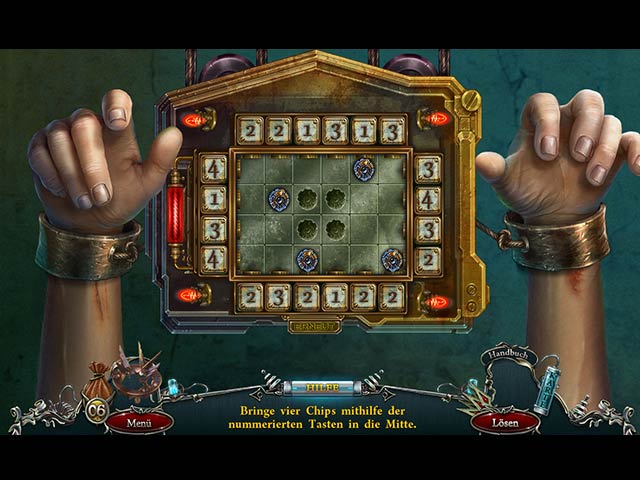 Zunächst gibt es auch hier mal wieder die Wahl der bekannten vier Schwierigkeitsmodi. Eine sehr schlechte Karte, die nur zum Transport geeignet ist befindet sich neben der Inventarleiste, sowie eine Apparatur, die sich später – nachdem wir sie zusammengebaut haben – zu unserer Leiste dazu gesellt. Außerdem ist der Tipp-Button dabei, der recht zuverlässig ist.