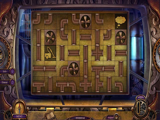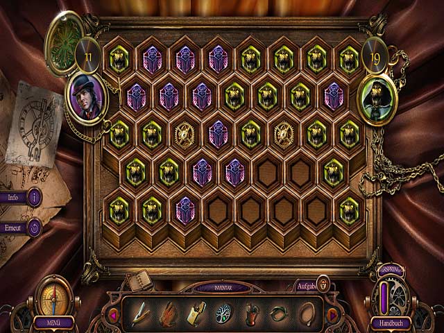 Die Wimmelbildszenen sind Wortsuchspiele mit ein paar Interaktionen, so muss man beispielsweise mit einem Messer eine Tasche aufschneiden, um einen Gegenstand zu bekommen. Die Minispiele sind von solcher Sorte: Finde passende Schlüsselpaare, die Korpusse haben verschiedene Symbole, zwei passen davon jeweils zusammen bis nur noch ein unpassender Schlüssel über bleibt. Also Kindergartenniveau. Die Grafik ist ganz hübsch und spukig.