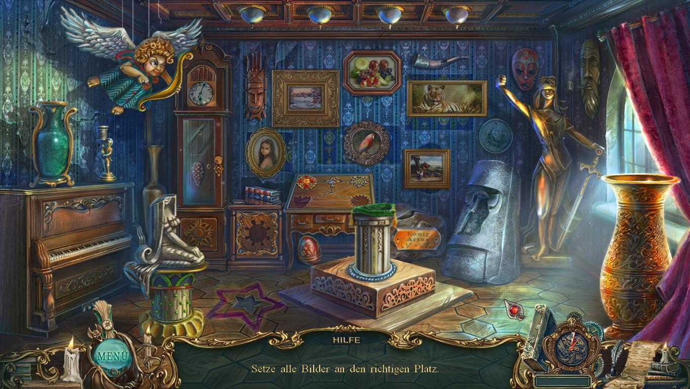 Optisch ist „Haunted Legends: Der Fluch von Vox“ hübsch gestaltet, weich coloriert und märchenhaft. Nur eine Sache fällt in den Wimmelbildszenen auf: Die Gegenstände sehen proportional klein aus und in der Speisekammer haben Geigen, Frettchen und Gießkannen eher weniger etwas zu suchen.
