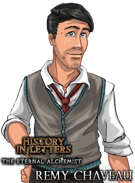 „History in Letters – The Eternal Alchemist“ spielt im heutigen Frankreich. Der Hauptcharakter, Dr. Remy Chaveau, ist ein angehender Philologe, der von einem Clienten ein altes Buch erhält – ein verschlüsseltes Tagebuch. Bei seinem Versuch es zu entziffern, fällt ihm immer wieder ein Wort auf: Flamel. Remy versuch mehr herauszufinden, über Flamel und seine Arbeit. Auf seiner Reise begenet der 33-Jährige vielen neuen Freunden. Eine davon ist Stella Morin, die ihm bei seiner Suche hilft. Professor Mathis Dupont ist mit seinen 62 Jahren ein erfahrener Experte für alte Sprachen und Chiffren. Für Remy ist der Professor außerdem wie eine Vaterfigur, nachdem dieser verstorben ist.
