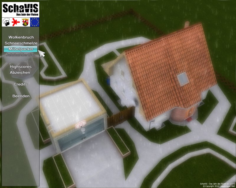Das Land Rheinland-Pfalz hat ein recht interessantes Spiel zum Thema Hochwasser und Hochwasserschäden heraus gebracht. Hierbei erkundet der Spieler das Haus eines Freundes, der in den Urlaub gefahren ist. Besagter Freund ruft einen an mit der Bitte um Hilfe, da er in den Nachrichten von Hochwasser-Warnungen in seiner Wohngegend gehört hat. Man muss nun aus der Ego-Perspektive das recht detailreich gestaltete Haus erkunden und schlimmeres verhindern.