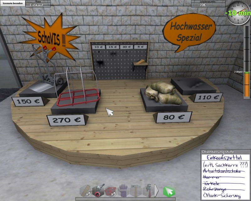 Das Spiel wurde von der Firma „Mindtrigger“ erstellt, die sich auf Gebäudevisualisierungen spezialisiert haben. Entsprechend ist auch die Grafische Qualität ausgefallen. Wie in einem Point&Click Adventure muss alles für die kommende Flut vorbereitet werden. Das reicht vom sicheren Verwahren von Möbeln und Elektro-Geräten bis zum aufschichten von Sandsäcken. Je nachdem, wie gut man sich dabei anstellt, verhindert man mehr oder weniger Schäden, die man inklusive entstandener Kosten am Ende jeder Spielrunde angezeigt bekommt.