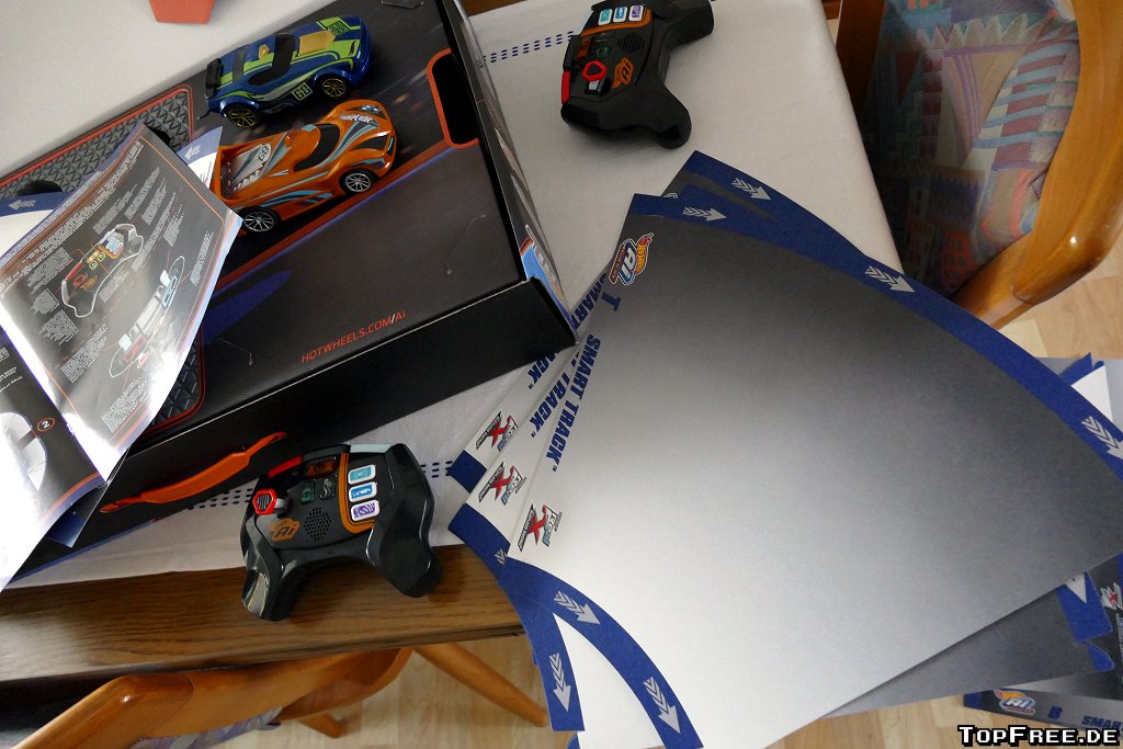 Angemerkt sei noch, dass der Controller drei AA-Batterien und die Fahrzeuge drei AAA-Batterien benötigen. Da Hot Wheels AI auf Real FX basiert, hätte ich mir diese Informationen auch schon vorher heraussuchen können – so hatte ich ein paar Eneloop Pro zu viel gekauft und musste meinen ersten Renntag mit normalen AA-Batterien starten. Für die Zukunft werde ich auch hier Akkus nutzen. Der Hersteller Wow Stuff von Real FX, auf dem Hot Wheels AI basiert, hat dies übrigens gewählt, damit die Wagen leichter sind und somit schneller.