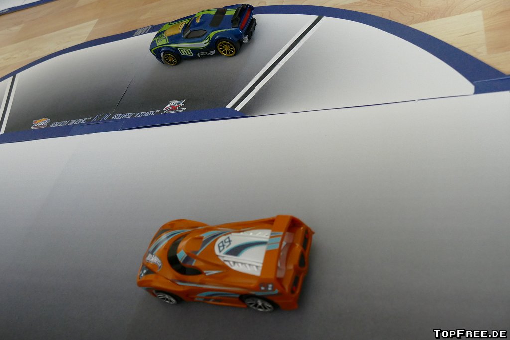 Fazit: Hot Wheels AI macht verdammt Spaß! Zumindest am ersten Tag. Gegen die KI zu fahren ist schon ein klasse Gefühl. Bisher nur zu zweit, weitere Controller sind noch nicht erhältlich, macht es allerdings noch mehr Spaß. Die Wagen fast wie von Geisterhand über die Fahrbahn fahren zu sehen, bringt ein ganz neues Fahrgefühl rüber – auch wenn das eigentliche Rennsystem von Real FX schon länger erhältlich ist (ich aber noch nie vorher gespielt habe). Mein Ersteindruck ist absolut positiv, vor allem wenn einem die Mitspieler fehlen, kann man trotzdem die Bahn aufbauen und einfach gegen die KI fahren. Ich frage mich schon, wie das denn mit insgesamt vier Wagen aussehen wird.