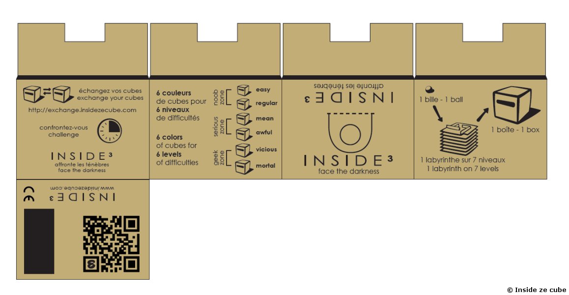 Der dunkle Würfel schreitet voran. Heute wurden Konzeptskizzen zur Verpackung und dem Mini-Poster mit Anleitung auf der Rückseite zum 3D-Würfel INSIDE³ veröffentlicht. Das Crowdfundingprojekt aus Frankreich ist auf der Plattform Ulule noch für 15 Tage vertreten und kann dort natürlich auch weiterhin unterstützt werden.