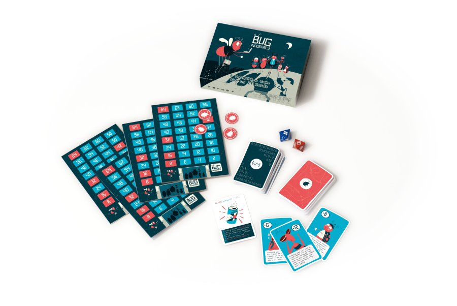 Bug Industries ist ein Würfel-Kartenspiel rund um den alltäglichen Irrsinn mit Servern und Code. Jeder Spieler hat ein neues IT-Projekt erhalten. Eigentlich sollte alles funktionieren. Eigentlich. Denn da sind diese hinterhältigen Bugs. 64 davon haben sich in das Projekt geschmuggelt. Wer die Bugs zuerst los wird, gewinnt das Spiel. Auf dem Spielbrett – dem Headquarter der Bug Industries – bewegt man hierfür den Spielchip nach oben oder unten – je nachdem, ob man sich Bugs abziehen kann oder noch weitere hinzukommen.