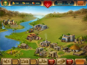 Es gibt primär zwei Spielmodi einen Zeit-Modus und einen ohne Zeitlimit, wobei ich hier nur den Zeit-Modus getestet habe, da ein Match3 Spiel schon noch eine Herausforderung sein soll. Hinzu kommen allerdings noch ein freispielbarer Turnier- und ein Blitzmodus, so dass für langanhaltenden Spielspaß gesorgt ist. Mit erfolgreichem Bestehen der einzelnen Level und auch währenddessen ist es die Aufgabe des Spielers Rohstoffe, Gold und Nahrung zu sammeln, mit dem das anfängliche Dorf stetig ausgebaut werden kann. Dieser Aufbau als Rahmenhandlung um die Spiele herum gefiel mir auf Anhieb sehr gut vor allem da für jedes neue Gebäude ein kleines Extrapuzzle gelöst werden muss. Die daraus resultierende Puzzleabwechslung ist sehr angenehm.