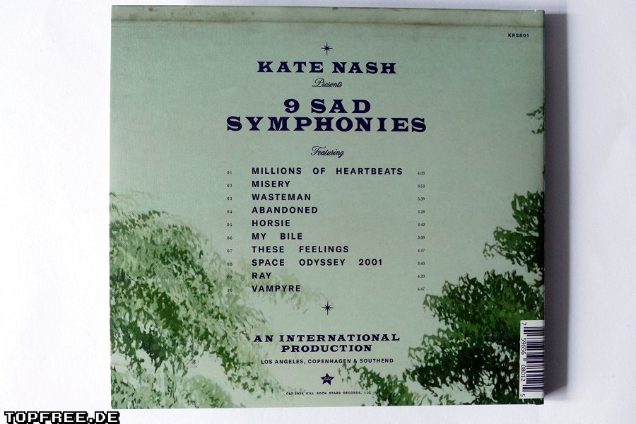Mit dem Album 9 Sad Symphonies hat Kate Nash ein wunderschönes orchestrales Album erschaffen. Die Texte sind bisweilen wie der Titel anmutet, wirklich traurig. Allerdings nicht so, dass man jetzt eine tiefe Depression vermuten müsste. Es gibt immer Hoffnung („Ich weiß, ich kann ein Sonnenstrahl sein“ aus „Ray“). Diese wird musikalisch mit untermalt. Letztendlich klingt es einfach schön, wenn man das Geigenspiel im Hintergrund mag (und Kate Nash).