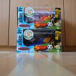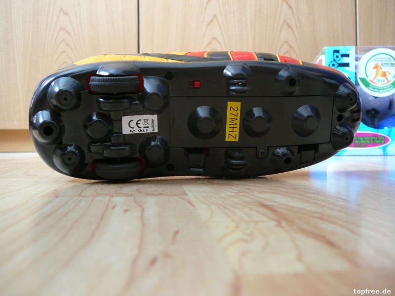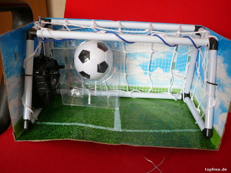 Der Schuh, in zweifacher Ausführung, kam jeweils mit Fernbedienung, Tor und einem Ball daher. Ausgepackt, Batterien eingelegt und los geht es. Komplett aus Plastik kann vor dem Fußballschuh noch ein „Schneeschieber“ vorgespannt werden. Wobei dieser dazu gedacht ist, denBall besser zu kontrollieren. Der Schuh steuert sich teilweise behäbig, große Dribllings oder Spielspaß kommt nicht wirklich aus.