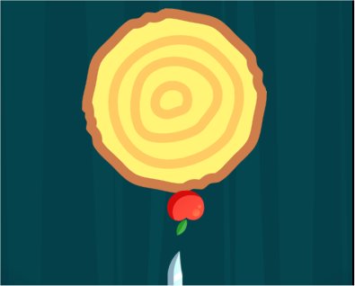 Hoch die Messer! Bei diesem Onlinespiel für Gelegenheitsspieler werden Messer nacheinander in eine sich drehende Holzschreibe geworfen. Dabei gibt es zahlreiche Hindernisse – nämlich die eigenen Messer, die schon im Pflock stecken.