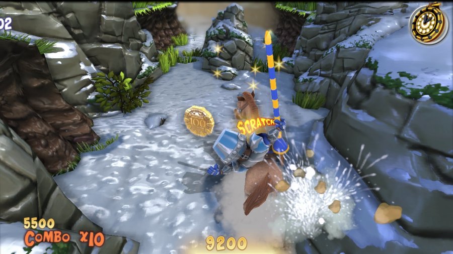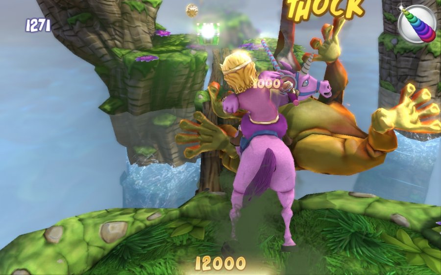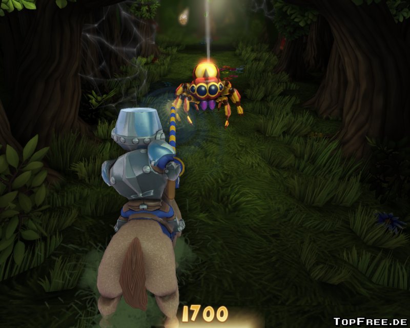 Ebenfalls die Steuerungsmöglichkeiten sind einfach gehalten. Links, rechts, Springen und die Lanze ausfahren. Dabei ist das Sichtverhältnis, vom Hintern des Pferdes, nicht sehr weit, sodass teilweise eine schnelle Reaktionsfähigkeit notwendig ist. Hindernissen ausweichen, diese zu überspringen, Extras einsammeln und mit der Lanze gegnerische Reiter vom Pferd hauen sowie im späteren Verlauf PoweUps ausführen. Das macht Spaß! Zahlreiche Upgrades und verschiedene Modi, wie den Endlos-Modus, runden das Pferdespiel ab. Hüa!