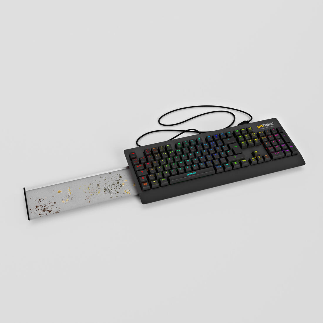 - Hochwertige, programmierbare mechanische Tastatur mit von getDigital entwickelter Krümelschublade und RGB Beleuchtung