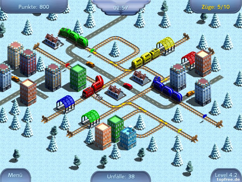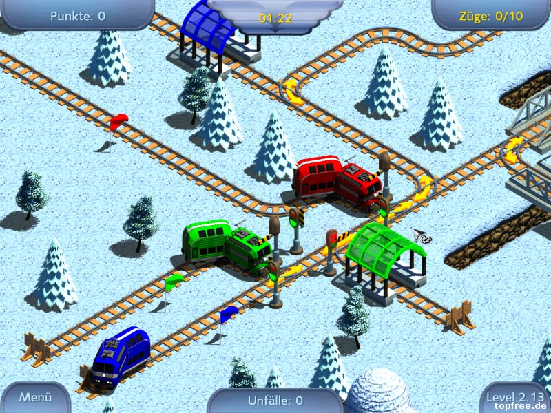 Die rot, blau, gelb und grünen Loks müssen an den jeweils farbigen Bahnhof durch Umstellung der Weichen gebracht werden. Dabei spielt manchmal die Zeit, manchmal die Anzahl der zu den Bahnhof gebrachten Loks eine Rolle. Manchmal auch beides. Realitätsnah ist dieses Spiel jedoch nicht, denn die Loks drehen an Prellböcken um. Nicht, dass sie dann rückwärts fahren, sie drehen sich richtig auf der geraden Schiene um. Ebenso, wenn gleichfarbige Loks gegeneinander fahren, drehen sich beide in die entgegengesetzte Richtung. Falls aber zwei verschieden farbende Loks aneinander rasseln, lösen sie sich in Rauch auf. Neue Loks erscheinen immer bei ihrem Fähnchen. Je nach Level müssen auch mal mehrere Bahnhöfe der gleichen Farbe angefahren werden. Zum erfolgreichen Bestehen des laufenden Levels reicht es öfters einfach aus, eine Lok auf immer demselben Weg in den Bahnhof zu bringen. Dies gibt natürlich nicht die volle Anzahl an Sternen, maximal drei, beendet aber das jeweilige Level erfolgreich.
