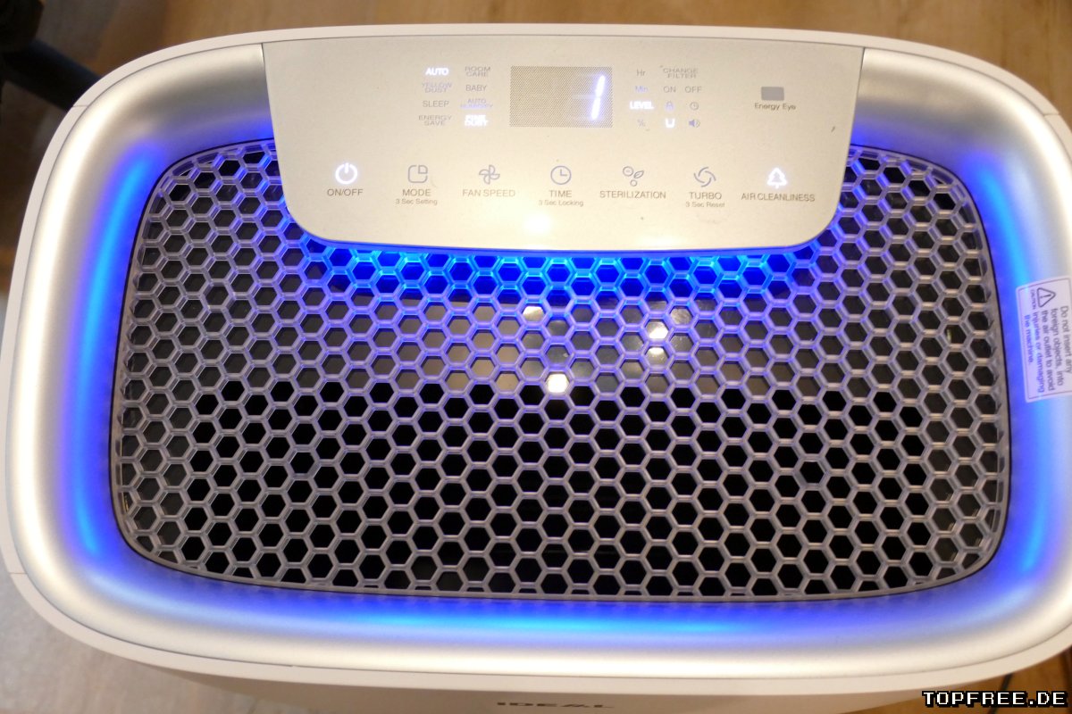 Komplett neu gibt es nur zwei Schritte vor dem Start: Die Folien der Filter müssen entfernt und diese wieder eingesetzt werden. Die Öffnung und somit auch ein Filterwechsel ist sehr einfach. Zudem verfügt der AP 35 H über praktische Rollen, die angebracht werden. Dann einfach den Netzstecker in die Steckdose stecken und auf dem Display (Folie vorher entfernen) auf ON/OFF drücken. Alles funktioniert über ein Touch-Display. Etwas kurios: Das Display ist hinter dem Luftschacht angebracht, somit zieht es immer (ins Gesicht), wenn man dieses bedient. Anders herum angebracht, wäre dies meiner Meinung nach sinnvoller gewesen.