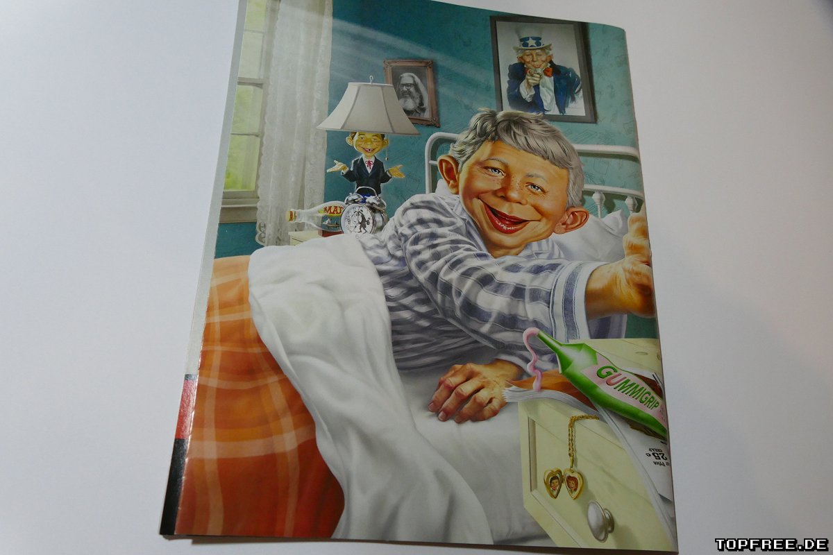 Für deutsche Leser etwas schwierig, wird es die Gesichter in zwei Wimmelbildern zu erkennen. Doch auch hier, es war mir eine Ehre. Apropos Deutsch: Der englischen Sprache solltest du mächtig sein, denn natürlich ist das MAD Magazin auf und in Englisch. Ach ja: Eine neue MAD-Einfalt darf natürlich auch nicht fehlen, ebenso wie ein altersgerechtes doppelseitiges Cover, das posterwürdig daher kommt. Danke MAD für so viel Spaß auf dem Klo. Und Danke an diese 70-jährige Ausgabe an die Amerikaner. Mit Sicherheit nicht meine letzte …