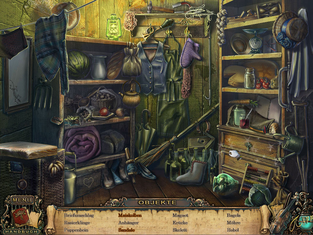 Wimmelbilder gibt es hier in zweiVarianten. Die Wortsuchliste weist ein oder mehrere zusätzlich versteckte Objekte auf, die sich hinter Tüchern, in Schubladen oder ähnlichem befinden. In den Puzzle-Szenen wird man jeden durch Umrisse dargestellten Gegenstand wieder benutzen müssen, um einen weiteren zu erhalten. Am Ende geht bei beiden Variationen ein Objekt ins Inventar.