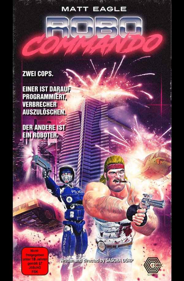 Matt Eagle ist zurück! In Robo Commando wird ihm sogar ein Polizeiroboter an die Seite gestellt. Autor Sascha Dörp hatte für den Comic Garden Erfurt im Rahmen der Bundesgartenschau 2021 das Matt Eagel Robo Commando Paket zusammengeschnürt – jetzt ist es noch einmal limitiert erhältlich.