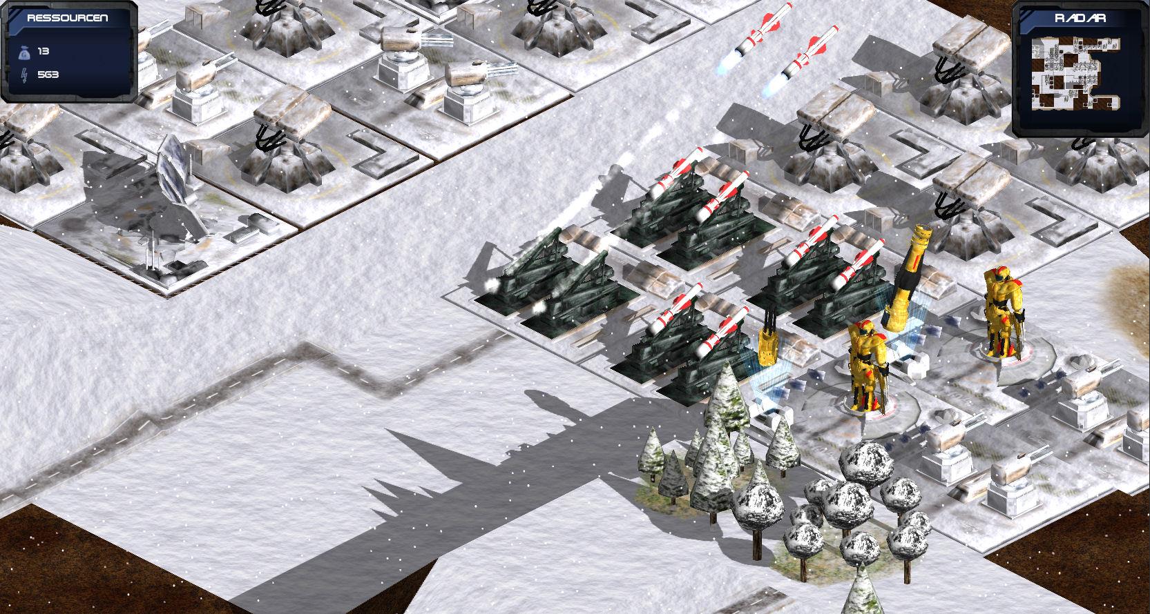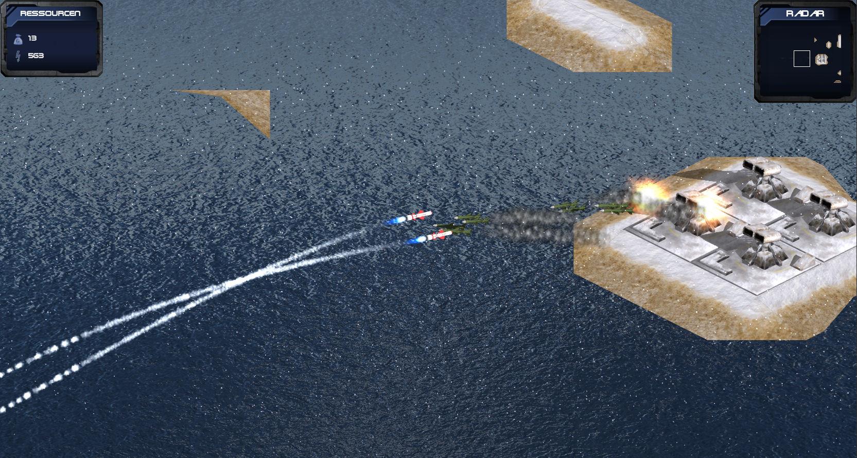 Da man in „Metal Marines“ auch mit Raketen rundenbasiert angreifen konnte, gibt es das natürlich bei uns auch. Allerdings nicht mehr rundenbasiert und etwas moderner.