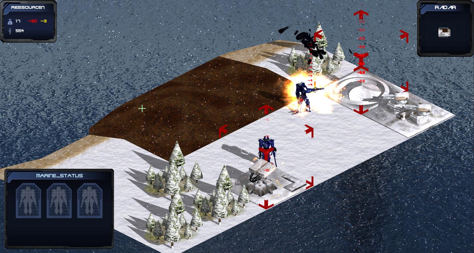 Im Detail haben wir entschieden die Mechs mehr in Szene zu setzen als es in Metal Marines der Fall war. So ist es in Mech Marines möglich seine Mechs mit speziellen Fähigkeiten auszustatten. In jedem Kampf gegen andere Einheiten, erhalten diese Erfahrungspunkte und steigen mit der Zeit eine Stufe auf. Nach jedem Stufenaufstieg können die neuen Fähigkeiten zugewiesen werden. So kann sich dieser schnell zu einem regelrechten Monster entwickeln und allenfalls den Spielverlauf komplett drehen.