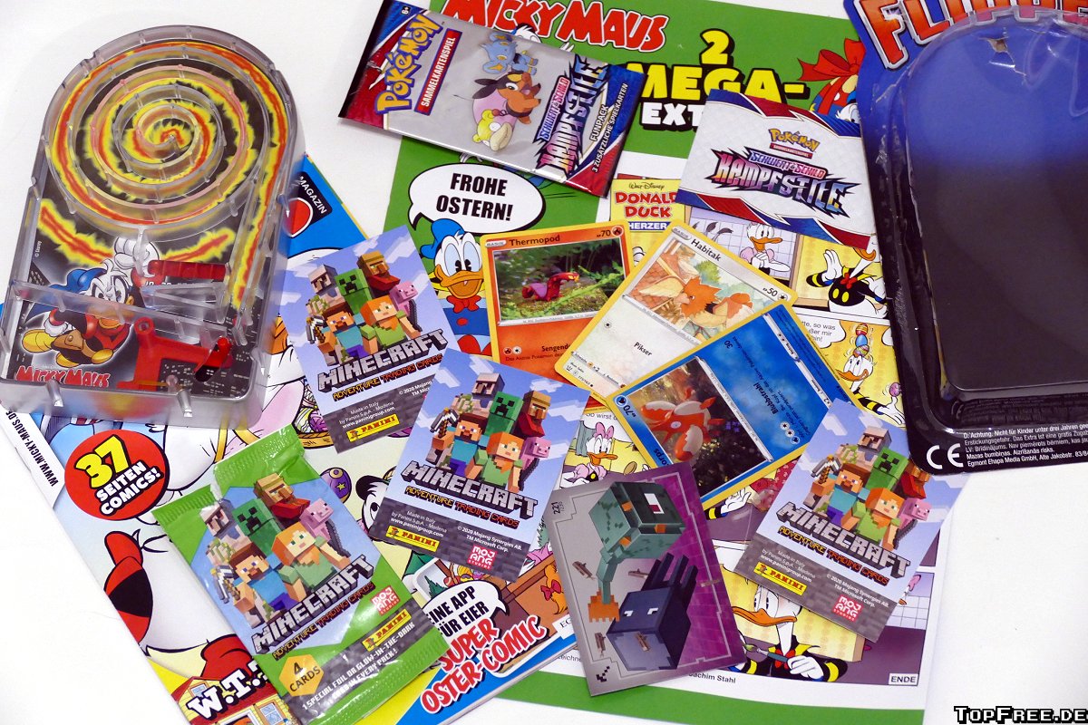 Die Ausgabe Nummer 07 im Jahre 2021 des Micky Maus Magazins bringt dieses Mal nur 37 Seiten, anstatt sonst 40, Comics mit. Dafür gibt es bei der Pappbeilga noch ein Comic obendrauf. Als weiteres Extra gibt es neben dem Phantomias Flipper vier Minecraft Adventure Trading Cards. Für alle Pokémon-Fans ist zudem auf einer Werbeseite noch ein Funpack mit drei zusätzlichen Spielkarten vom Sammelkartenspiel „Schwert & Schild Kampfstile“ dabei.