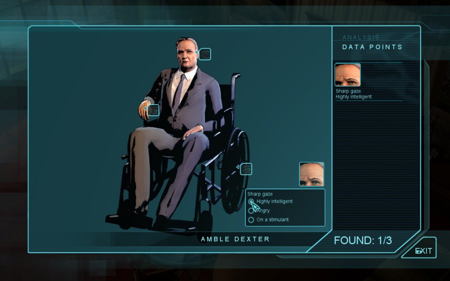 Doch nicht nur durchlebt der Spieler in Moebius: Empire Rising eine fesselnde Geschichte, auch verbindet es klassische Point&Click-Puzzles mit der einzigartigen Fähigkeit von Malachi Rector, Personen und Gegenstände bis ins Detail analysieren zu können. Dies erlaubt es, komplexe Situationen durch die eigenständige Kombination von Fakten aufzulösen, was die Rätseldichte spürbar erhöht. Dabei gibt es neben dem normalen Schwierigkeitsgrad einen „True Adventure“-Modus, der vor allem Fans klassischer Sierra-Spiele das Herz höher schlagen lassen wird.