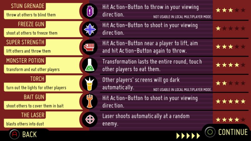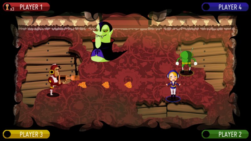 Das Spielprinzip ist so einfach wie süchtig machend: Vier Spieler starten in einer Arena, welches von einem Monster heimgesucht wird. Im klassischen 2D-Gameplay versucht jeder Spieler dabei, bis zum Schluss übrig zu bleiben. Mit Hilfe verschiedenster Waffen wie einer Blendgranate, einem Verwandlungstrank (verwandelt den Spieler selbst in ein Monster), einem Eisgewehr oder auch einem automatischem Laser kämpfen die Spieler in jeder Runde neu um das Überleben. Einzelkämpfer kommen im Einzelspielermodus dank der cleveren CPU-Gegner auf ihre Kosten. Das Highlight des Spiels ist jedoch der Multiplayermodus für 2-4 Spieler, der die OUYA damit zur wahren Party-Konsole macht!
