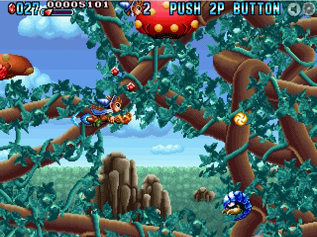 Hex, Hex! In Mystic Riders steuert man einen pixeligen Zauberer durch die kunderbunte Zauberwelt. Erinnert mich irgendwie an ein Gameboy-Spiel. Gesteuert wird mit den Pfeiltasten, mit X wird geschossen, C wirft den Besen und mit der Leertaste wird ’ne Münze eingeworfen. Alles wirkt schön retro, selbst der „Push 2P Button“, denn den gibt’s irgendwie nicht. Allerdings kann man die Steuerung anpassen, ist bei einem Flashspiel auch eher selten.