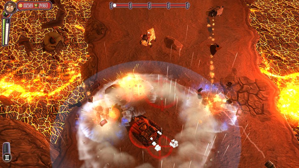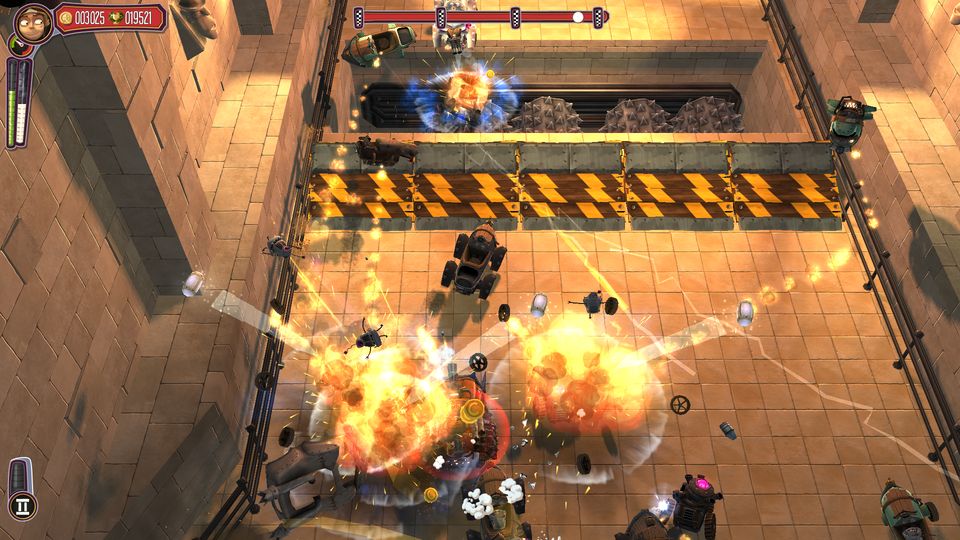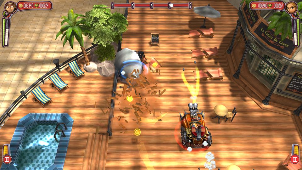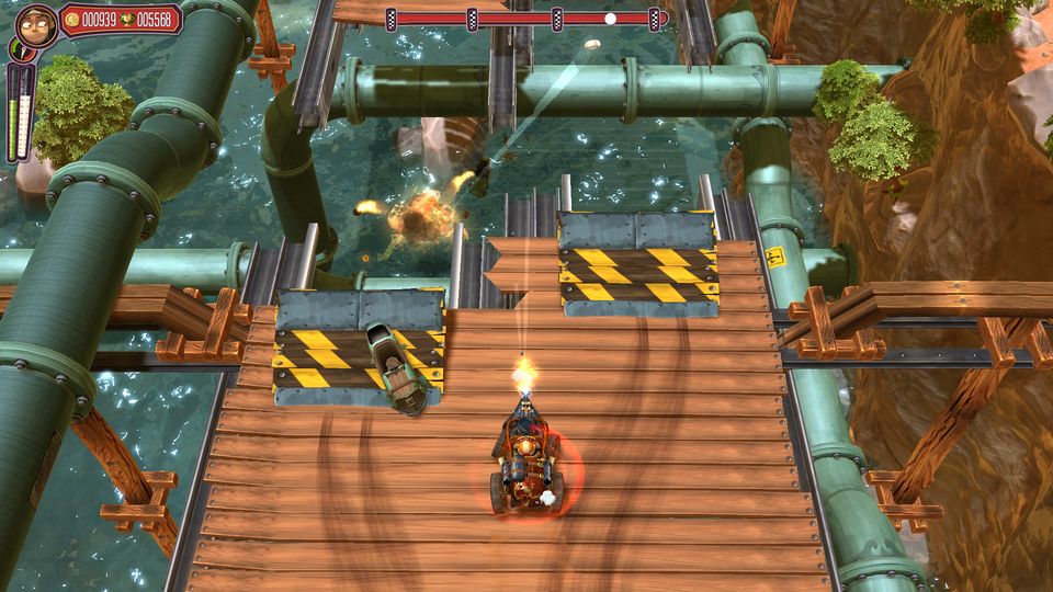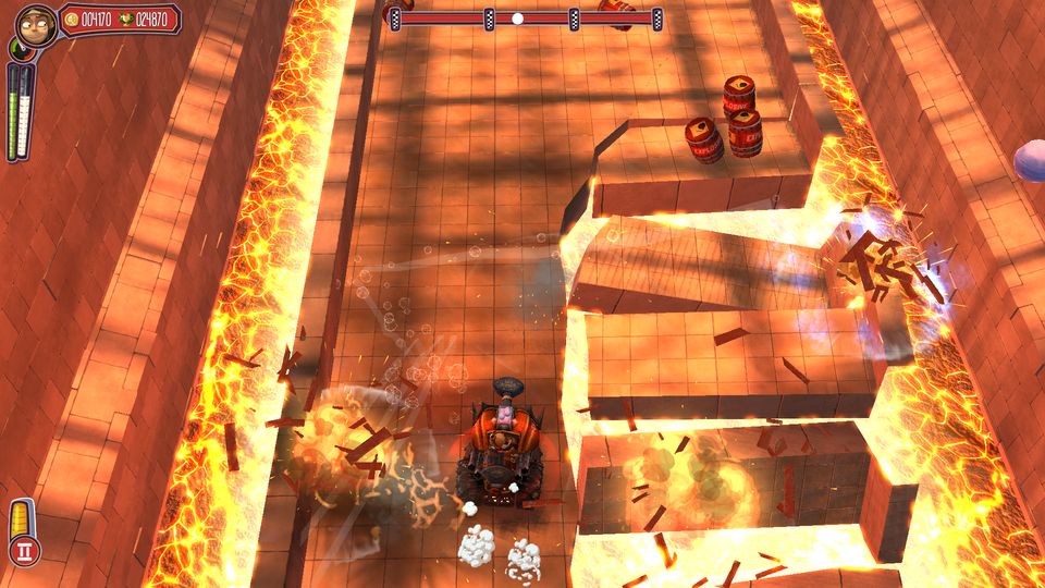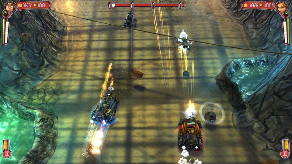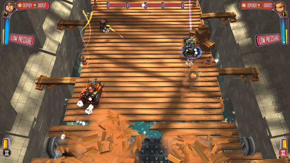 Die Bilder zeigen die liebevoll gestaltete Spielwelt in neuer Qualität. Hier jagt der Held der Geschichte dem ruchlosen Grafen hinterher, der einer ganzen Welt das lebensnotwendige Wasser abgegraben hat, um damit den Betrieb seines privaten Wellness-Bades sicherzustellen. Gegen die Legionen der Finsterlinge zieht man als Pilot eines dampfgetriebenen Buggys in den Kampf und schießt sich seinen Weg durch die Täler und Wiesen bis zum finalen Showdown im brandneuen Grafen-Spa. Durch ausgeklügelte Upgrades für verschiedene Wagenteile und raffinierte Waffensysteme bietet das Spiel die Möglichkeit, den Steam-Buggy immer wieder an neue Situationen und Herausforderungen anzupassen. So bietet „Pressure“ rasante dampfbetriebene Unterhaltung in spannenden Levels und wird dabei von einer bizarr komischen Geschichte umrahmt.