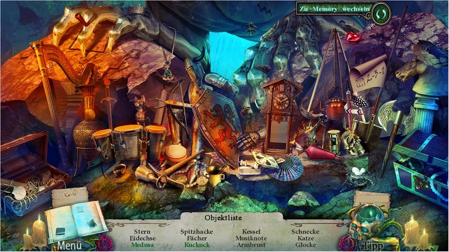Düstere Fantasy erwartet Wimmelbild-Fans ebenfalls ab 15.10.2014 in Royal Detective: Queen of Shadows: Hier stehen sie der jungen Hexe Princess im Kampf gegen böse Mächte bei, die ihre Mutter in einen verfluchten Wald verschleppt haben.