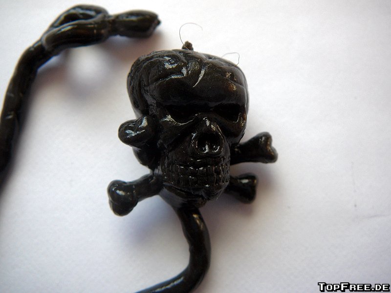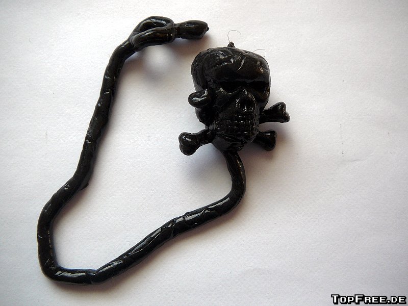 Ich musste diesen Sticky schon ein wenig betrachten, um das erste Mal den Totenkopf richtig herum erkennen zu können. Nunja, es sieht etwas…zermatscht aus. Was macht man jetzt damit? Ich habe ehrlich gesagt keine Ahnung, vielleicht gegen die Wand werfen? Auf den Boden prallen lassen, dann klebt er kurz fest und schnappt wieder hoch. Die Schleim-Schlaufe kann sich um den Finger gewickelt werden. Normalerweise bin ich nicht sooo pingelig, aber nach der Benutzung habe ich mir erstmal die Hände gewaschen…