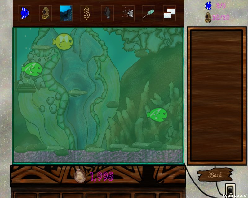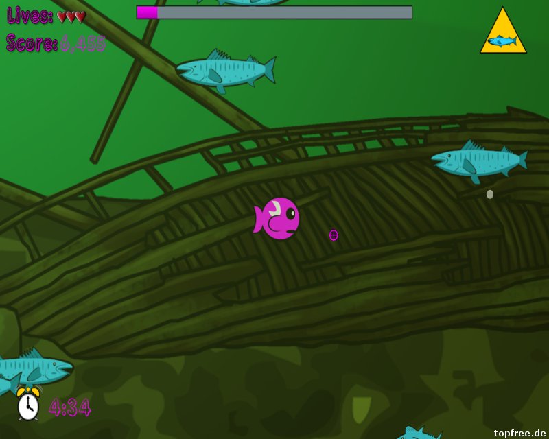 In den Optionen kann der Ton und die gleichbleibende Hintergrundmusik ausgeschaltet werden. Die Auflösung ist 1280×1024 und lässt sich im Fenstermodus spielen. Zur Auswahl stehen drei Schwierigkeitsgrade. Das Spielprinzip ansich ändert sich kaum. Allerdings bewegen sich die „bösen“ Fische, die, die man nicht berühren sollte, im späteren Verlauf auch mal nach oben oder unten und…folgen Noms…uhhaaa. Aber jetzt mal im Ernst…