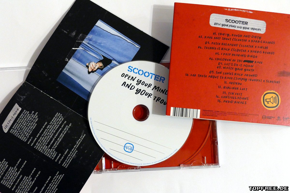Open Your Mind And Your Trousers („Öffne deinen Geist und deine Hose“) von Scooter in der Besetzung von H.P. Baxxter, Marc Blou und Jay Frog ist ein gutes Bumm-Bumm-Album für Fans. Weiterhin gibt es wohl nur zwei Lager, entweder man liebt Scooter oder eben nicht. Ich habe es mir wieder einmal gekauft. Eigentlich hatte ich darauf gewartet, dass das CD-Album günstiger wird, dann blieb es doch beim Normalpreis (17,99 Euro hatte ich bezahlt). Vielleicht werde ich Scooter-müde. Oder alt. Oder beides. Aber man hört das kurze Album so durch, es macht Spaß, aber ist auch nichts Besonderes (mehr). Scooter halt.