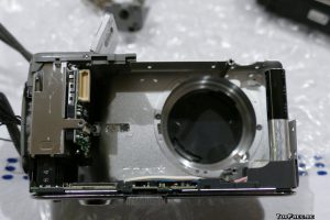 Das eigentliche Öffnen, sprich Aufschrauben, der Kamera gestaltet sich mit dem passenden Schraubendreher denkbar einfach. Viele kleine Schräubchen halten das Gehäuser der Lumix TZ1 zusammen. Ein wenig Geschick ist hingegen beim Öffnen der Stecker gefragt, denn die dünnen Leiterbahnen können schnell reißen. Mit etwas Ungeschick geht dies leider ganz schnell. Dennoch konnte ich ohne größere Probleme den Umtausch der Objektive vornehmen und erhoffte mir nun eine funktionierede Kamera. Bei den ersten Testläufen im noch geöffneten Zustand funktionierte der Zoom wieder. Nach dem Zusammenschrauben erfolgte dann leider die Ernüchterung: Das Display bleibt einfach schwarz. Es ist schön, dass das Objektiv wieder rein- und rausfahren kann – aber ohne Bild nutzt mir dies nichts. Gespeichert werden zudem gar keine Bilder, noch nicht mals schwarze. Wer einen Tipp hat, woran dies liegen kann und wie man den Fehler beheben kann, bitte in die Kommentare schreiben.