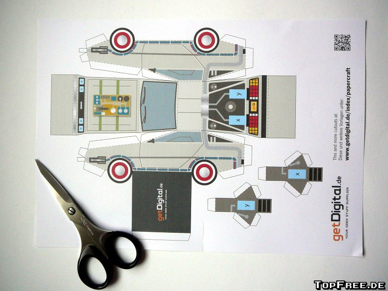 Für diesen Artikel habe ich mir einmal das Motiv „DeLorean“ von getDigital ausgesucht, das ihr natürlich auch kostenlos downloaden und nachbasteln könnt. Der „DeLorean“ von der DeLorean Motor Company (DMC) fiel besonders durch seine moderne und einzigartige Erscheinung auf, wurde 1981 allerdings nur 21 Monate mit etwa 9200 hergestellten Fahrzeugen produziert. Zeit ein weiteres Modell zu produzieren…
