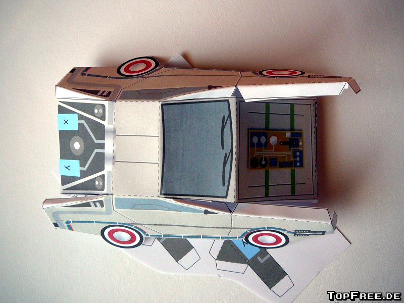 Als Papier sollte etwas stabileres als normales Druckerpapier benutzt werden. Danach wird die Vorlage einfach ausgeschnitten und an den unterbrochenen Linien gefaltet. Allerdings ist hier wohl eine Knick-Markierung zuviel eingearbeitet worden, denn irgendwie befindet sich über den Reifen durchgehend eine Einzeichnung an der Seite des Autos, das die Räder nach innen legen würde. Für dieses Papercraft-Modell wird zudem Kleber benötigt, da es keine eingezeichneten Schlitze gibt.