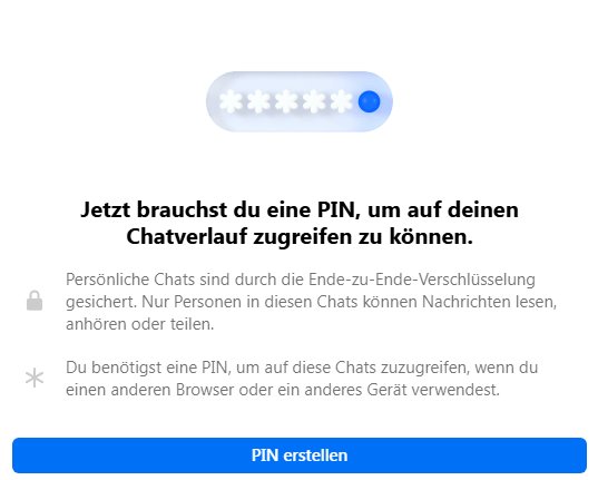 Angekündigt hat es META schon länger. Bisher war es aber immer noch möglich die Meldung wegzuklicken. Auf dem Desktop-PC führt META jetzt in Messenger jedoch den PIN zwingend ein, um die Chats weiter verwenden zu können. Dadurch soll die Sicherheit weiter geschützt werden. Falls Benutzer keinen PIN einrichten, ist es nicht mehr möglich auf weiteren Geräten auf die Chats zugreifen zu können.